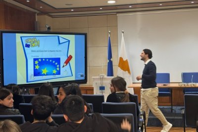 Εκεί, οι μαθητές παρακολούθησαν μία 80λεπτη διαδραστική παρουσίαση μέσα από την οποία εμπλούτισαν τις γνώσεις τους γύρω από ευρωπαϊκά θέματα, εξελίξεις σε σχέση με την Ευρωπαϊκή Ένωση και εκπαιδευτικές και επαγγελματικές ευκαιρίες που δίνονται στους νέους από την Ευρωπαϊκή Ένωση.
