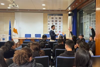 Τη Δευτέρα 24 Φεβρουαρίου 2025 τα τμήματα Α3 και Γ3 του σχολείου μας επισκέφθηκαν το Σπίτι της Ευρώπης στην Λευκωσία. Στόχος της επίσκεψης ήταν η εξοικείωση των μαθητών με λειτουργία των ευρωπαϊκών θεσμών και την ιστορία και εξέλιξη της Ευρωπαϊκής Ένωσης, καθώς και η κατανόηση του ρόλου και της σημασίας των αποφάσεων της Ευρωπαϊκής Ένωσης στην καθημερινή τους ζωή.
