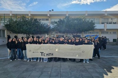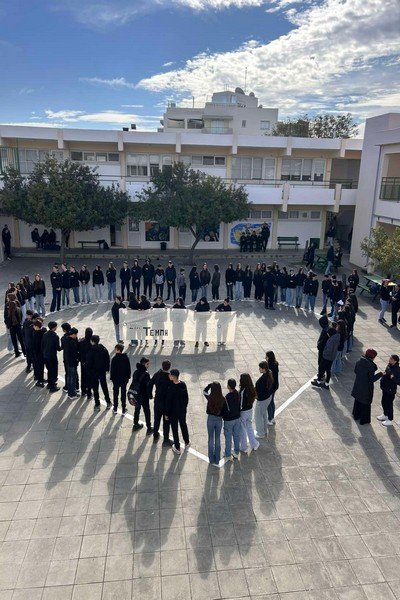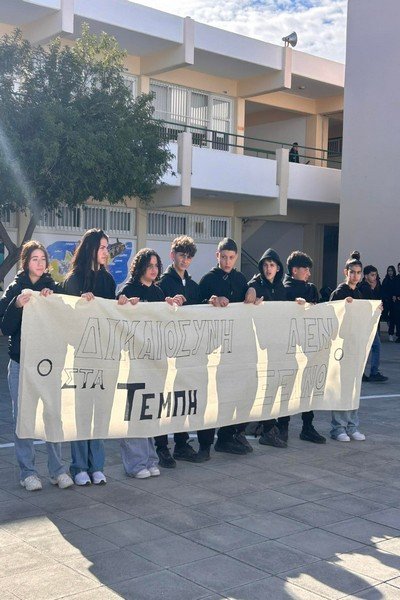 Σήμερα 28 Φεβρουαρίου 2025, δύο χρόνια μετά την τραγωδία στα Τέμπη, με πρωτοβουλία του ΚΜΣ οι μαθητές και οι μαθήτριες του σχολείου μας απέδωσαν φόρο τιμής στα αδικοχαμένα παιδιά και απαίτησαν να λάμψει η αλήθεια και να αποδοθεί δικαιοσύνη για το τραγικό δυστύχημα. Τα παιδιά ανήρτησαν πανό και τήρησαν μονόλεπτη σιγή στη μνήμη των νεκρών.