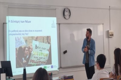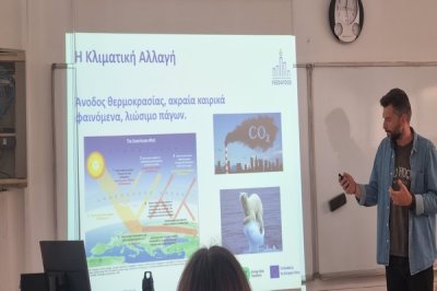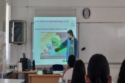 Στο πλαίσιο της Παγκόσμιας Ημέρας Γης που καθιερώθηκε στις 22/04, μέσω του Ιδρύματος Έρευνας και Καινοτομίας, τα παιδιά του Προγράμματος ΕΥ ΖΗΝ είχαν την ευκαιρία σήμερα στις 28/04 να μάθουν και να συζητήσουν τις δράσεις του επαγγελματία ερευνητή Δόκτορος Βασίλη Λίτσκα καθώς και τον ρόλο - δράση του όσο αφορά στην κλιματική αλλαγή. Επίσης τους δόθηκε η ευκαιρία να συζητήσουν τις απλές καθημερινές αλλαγές που μπορούμε να υιοθετήσουμε ο καθένας για την απάμβλυνση και αντιμετώπισή της.
