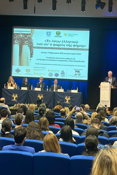 Τη Δευτέρα, 9 Φεβρουαρίου 2026 πραγματοποιήθηκε ο πρώτος εορτασμός καθιέρωσης της «Παγκόσμιας Ημέρας Ελληνικής Γλώσσας» από την UNESCO. Η εκδήλωση, την οποία παρακολούθησαν εκπρόσωποι από το σχολείο μας, τελέστηκε στην Αίθουσα Εκδηλώσεων του Πανεπιστημίου Κύπρου, σε κλίμα συγκίνησης και περηφάνειας για την αξία, τη διαχρονικότητα και την οικουμενική ακτινοβολία της γλώσσας μας.